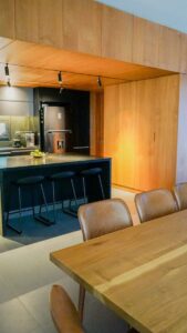 En colaboración con el Estudio Ortega, nos enfrentamos al desafío de destacar la madera como protagonista en una vivienda única. Creamos muebles a medida que se integran armónicamente en cada espacio, manteniendo un equilibrio para evitar que la abundancia de madera genere una sensación de pesadez. Descubrí cómo logramos fusionar funcionalidad, estilo y la calidez de la madera en cada rincón de este proyecto excepcional.